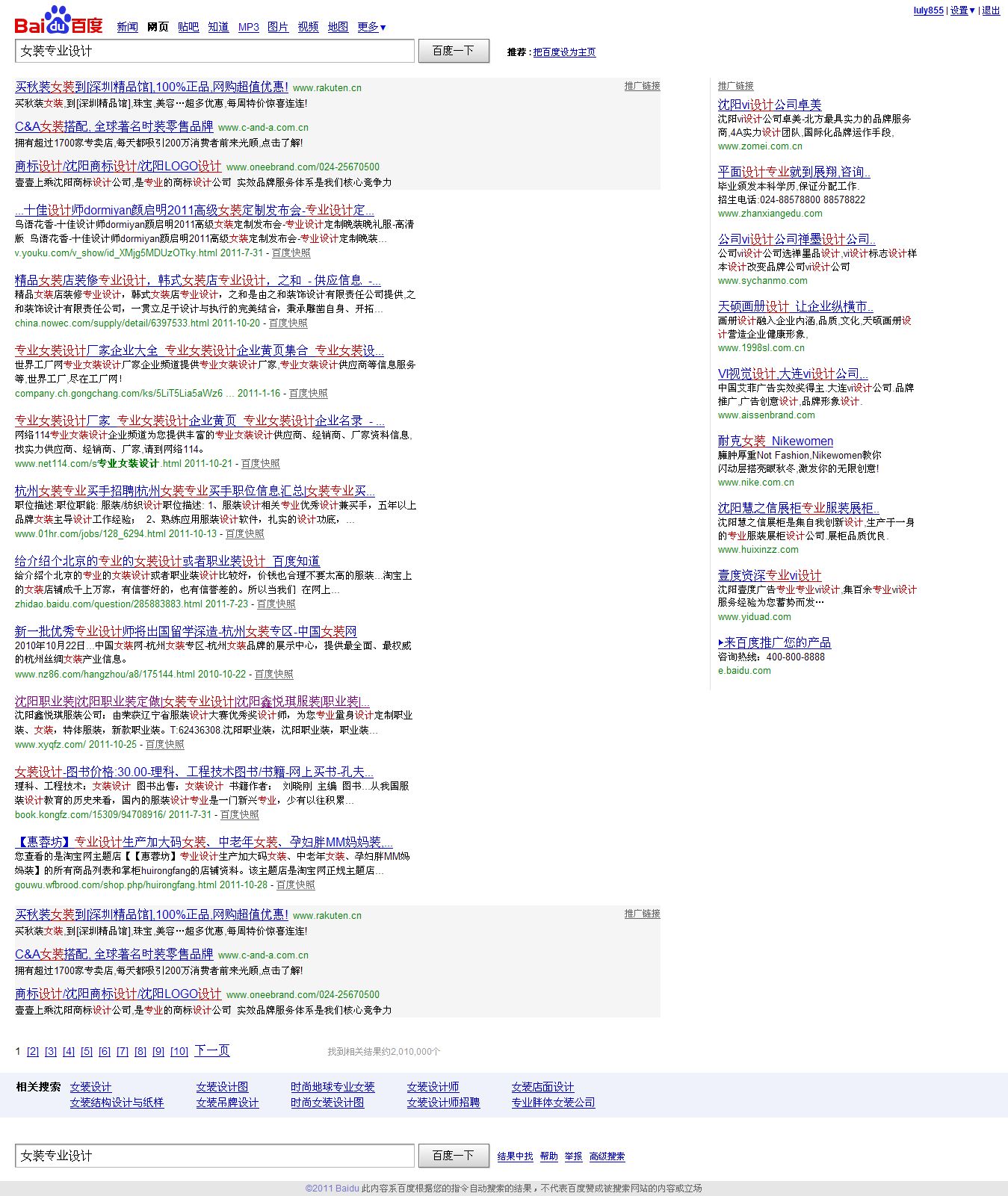 關(guān)鍵詞選擇:沈陽(yáng)職業(yè)裝 女裝專業(yè)設(shè)計(jì) 優(yōu)化效果:百度排名第一頁(yè)