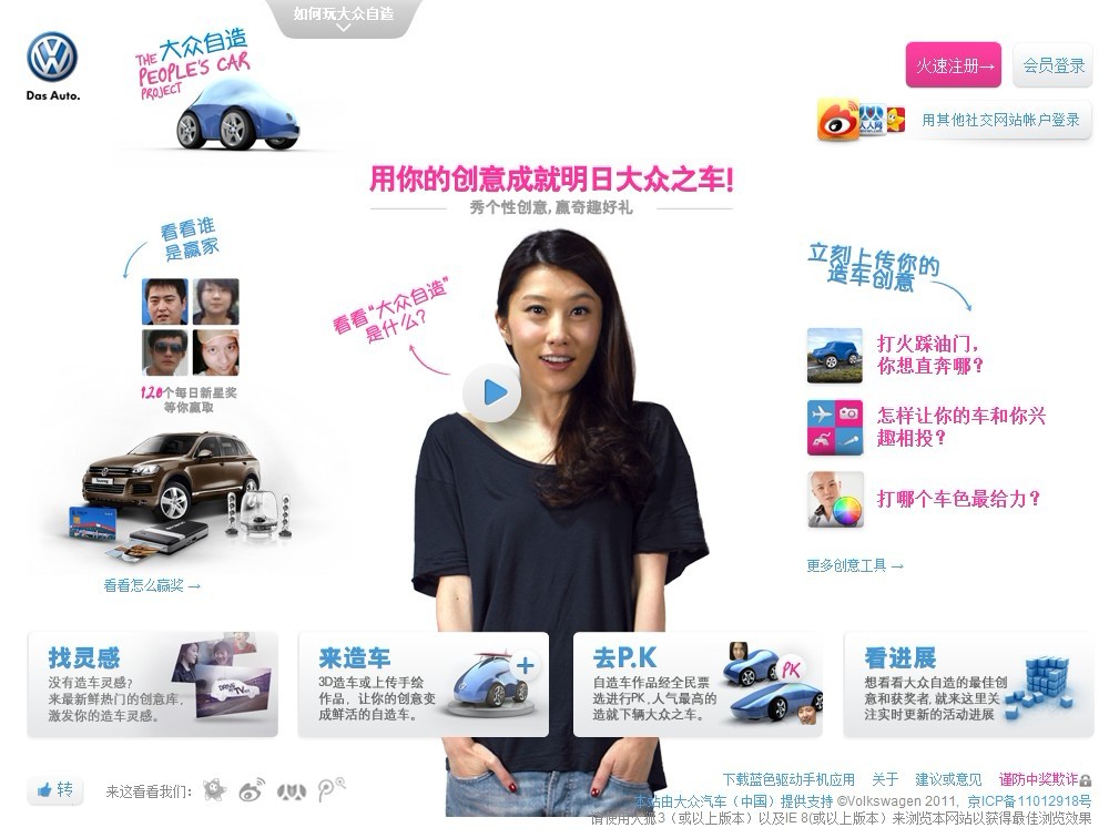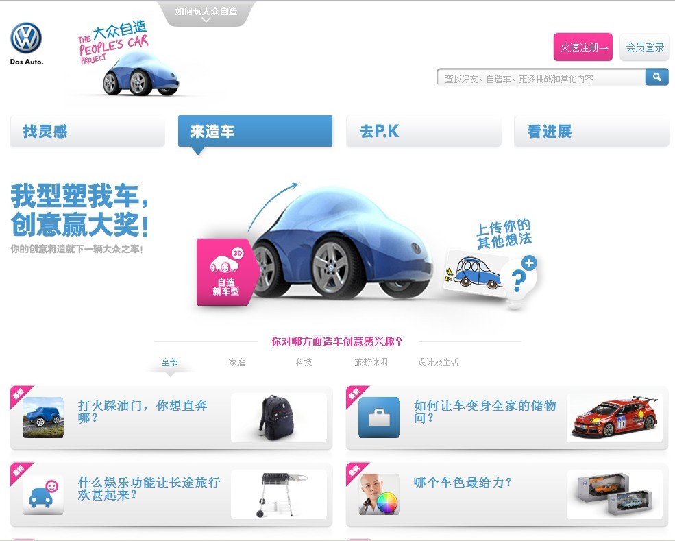 負(fù)責(zé)“大眾自造”項(xiàng)目創(chuàng)意合作的天時(shí)中國公司策略總監(jiān)Devin Beringer說:這可能是汽車界第一個(gè)真正意義上的CRM項(xiàng)目。“大眾自造”充分利用了從社交媒體工具到三維建模軟件的新媒體工具,“對(duì)汽車愛好者來說,親身參與、重新定義‘大眾汽車’品牌無疑是最令人興奮的事”。