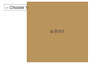<select>元素出現(xiàn)在了頂部,它被設(shè)置了“相對(duì)定位”并且Z-index值為“1”。金色的BOX在這個(gè)層疊順序中排在了第二位,它的Z-index值是“9999”。因?yàn)樽匀粚盈B順序及Z-index值的原因,在我們目前所用的所有瀏覽器中金色的BOX都會(huì)排在頂部,但I(xiàn)E6除外。