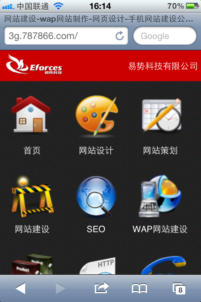 沈陽易勢科技有限公司 網(wǎng)站制作網(wǎng)絡(luò)營銷公司 © 2011 , All rights reserved. 公司地址:沈陽市鐵西區(qū)貴和街道建設(shè)中路15號(hào)淺草綠閣商務(wù)樓402室wap網(wǎng)站建設(shè)案例